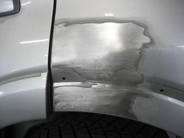 クォーターパネルのライン部は形状を復元するのが大変困難な為、他社ではパネルの交換となる場合があります。当社ではお客様のご希望に応じ鈑金修理も可能です。