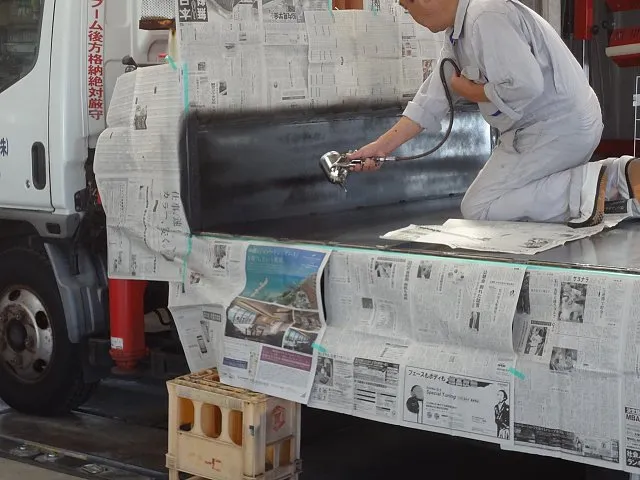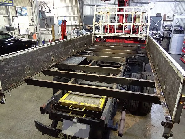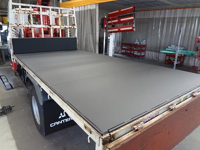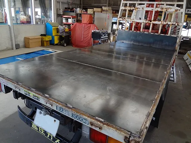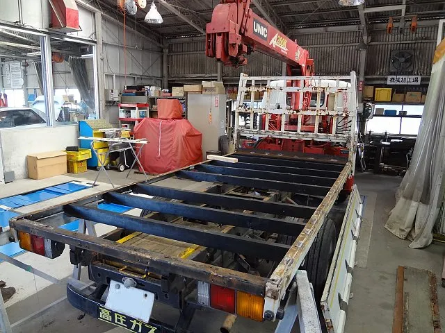 トラック荷台の床板が腐食の為、交換します。 まずは鉄板の溶接をはがし