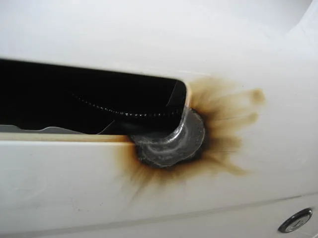 ストップランプユニットを外すと腐食の為、取付部に変形が見られます。この為だけに、トランク交換では、大変費用がかかる為、当社では腐食の部分のみを修理をします。