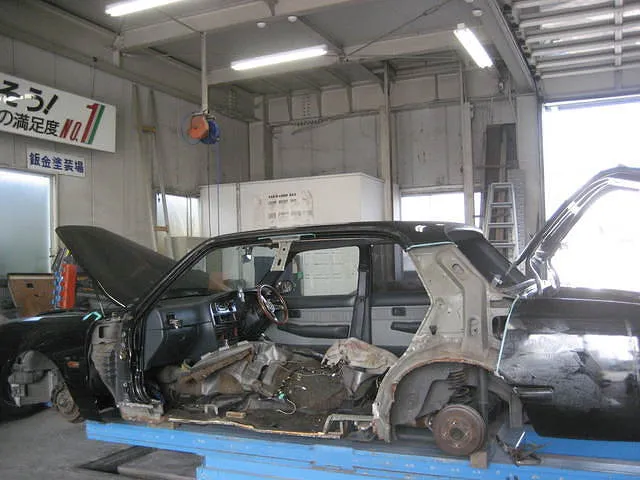 フロア付近にまで歪みが出ている為、必要最小限にパーツを取外し修正及び交換。入手困難な