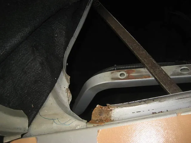 トランクのウェザーストリップ取付部腐食。原因は水はけが悪い為水が溜まります。
