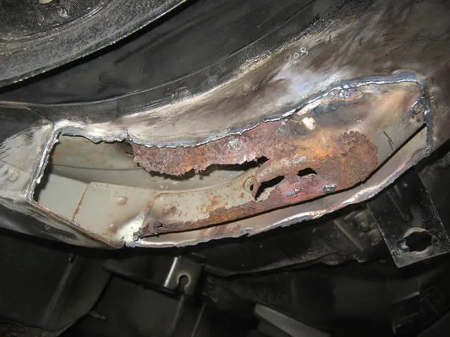 初見にて腐食の度合いは想像できますが。部位を切開するとご覧の通り。2重構造の内部パネルも腐食が進みボロボロの状態です。