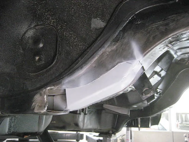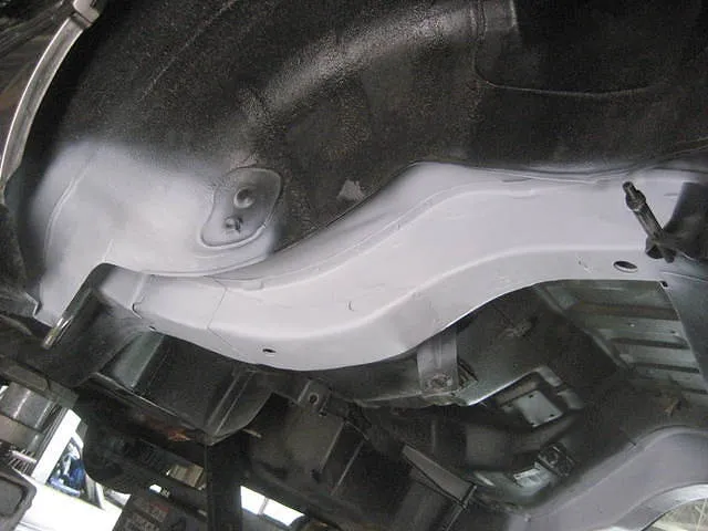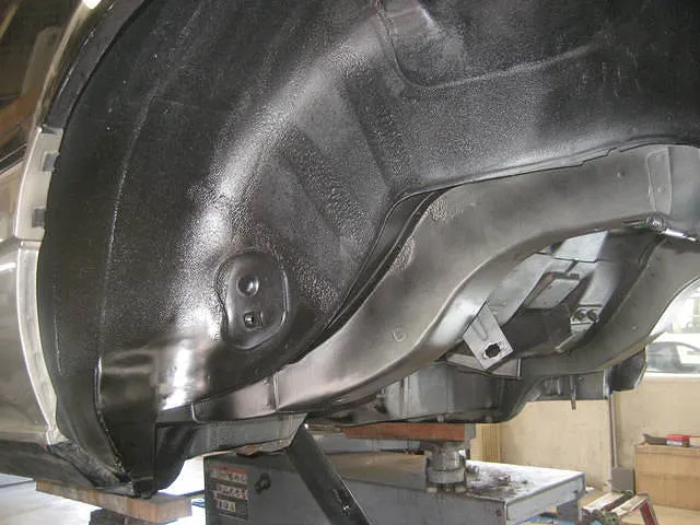この場所は作業が困難な為、リアメンバー及びサスペンション、燃料タンク、その他付随部品を全て外しての作業となります。
