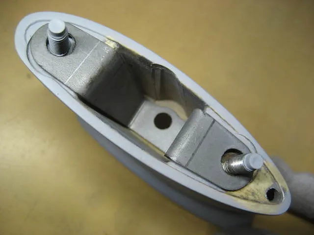 商品は純正部品と同サイズで中央の取付部に幅を付けて強度を確保しております。