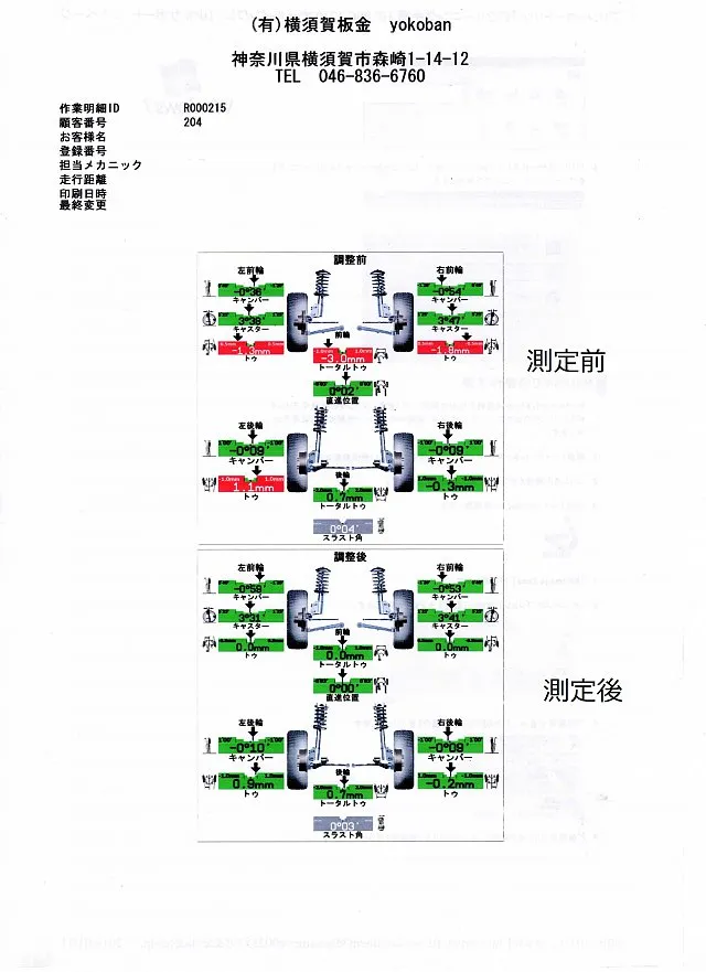 作業後には、アライメントの調整前及び調整後のデータをお渡しします。