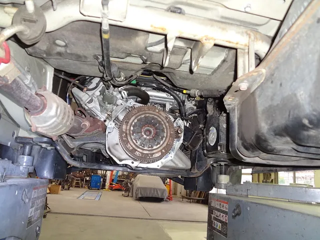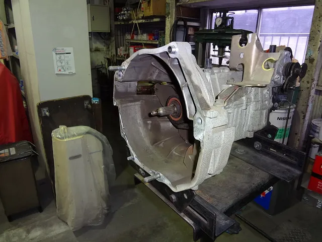 ミッションを降ろして状態の確認。クラッチディスクとクラッチカバーを交換。